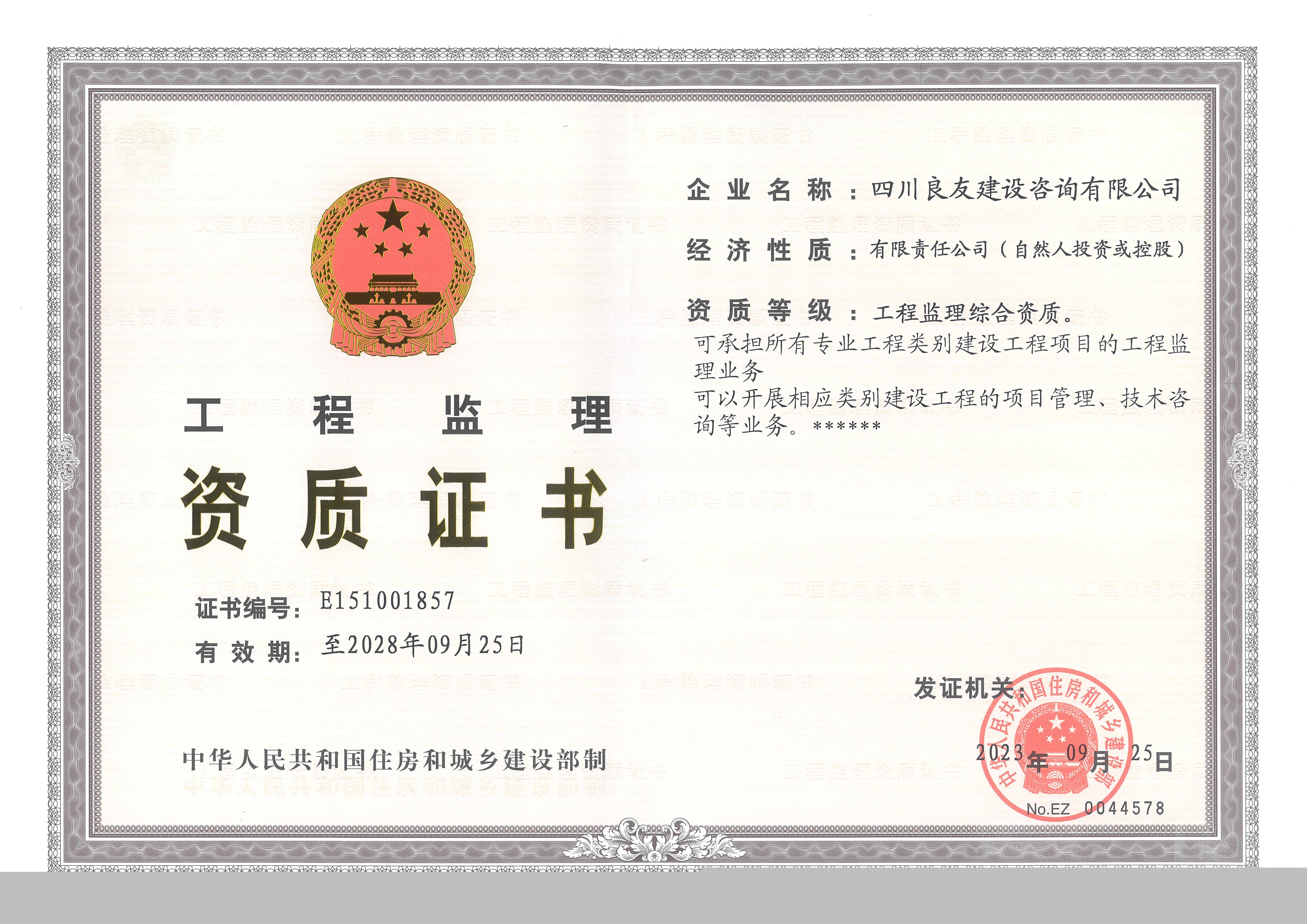 工程監(jiān)理資質(zhì)證書(shū)(綜合)