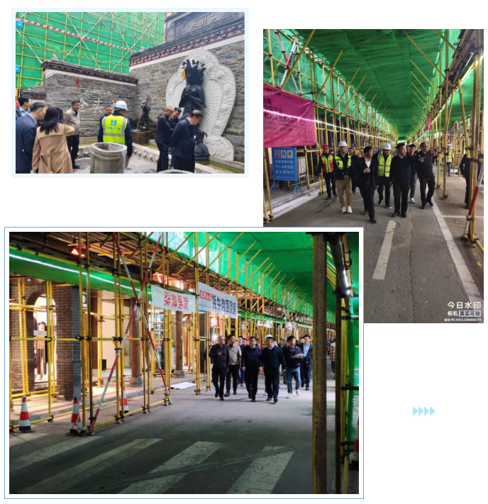 領(lǐng)導(dǎo)一行沿街踏勘,重點(diǎn)詢問外立面工藝、文化符號(hào)植入、交通與民生保障措施,對(duì)施工質(zhì)量、進(jìn)度及更新理念給予充分肯定,并強(qiáng)調(diào):“以更新促保護(hù)、以改造提品質(zhì),讓老城既煥新又留韻?!?/span>